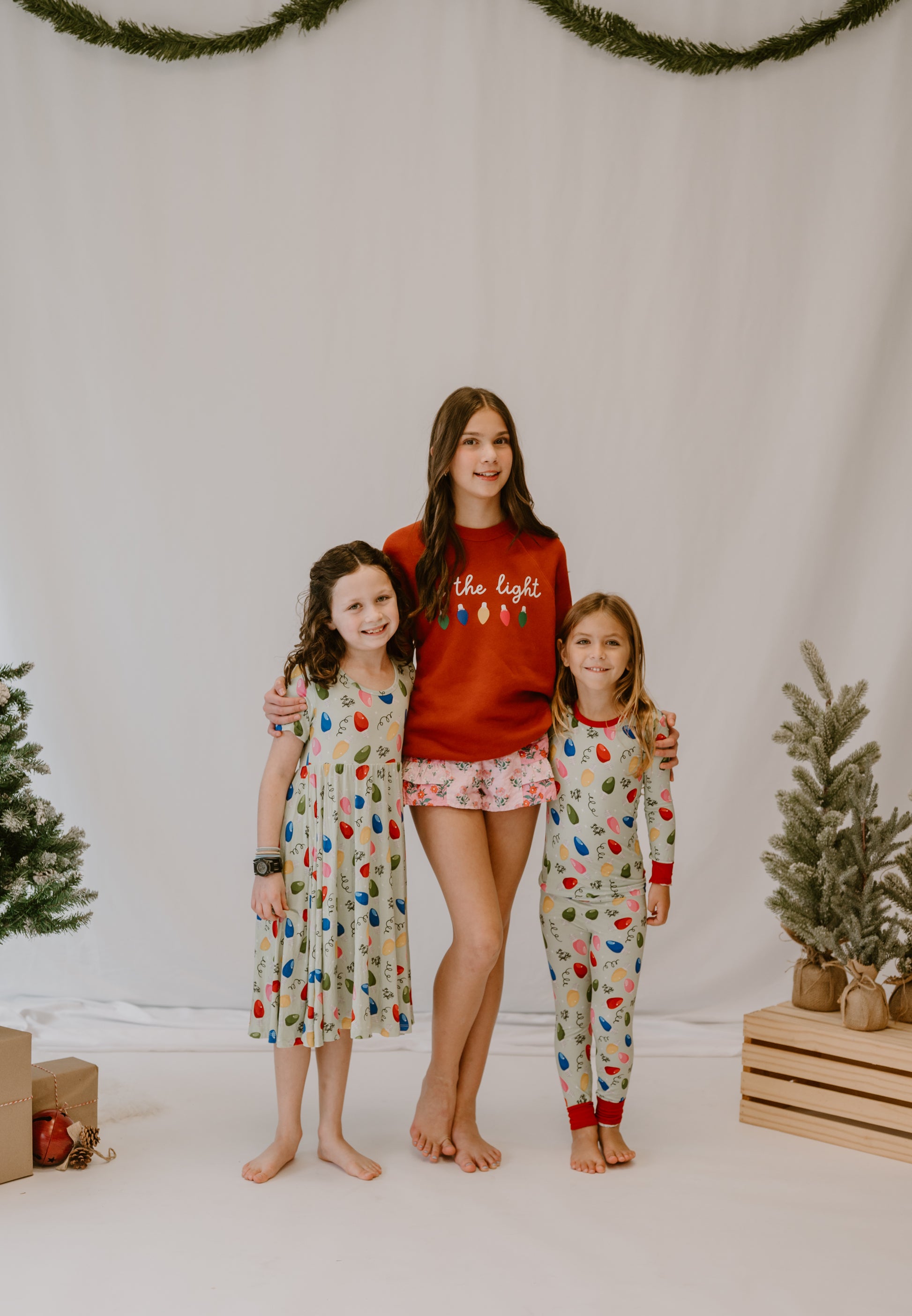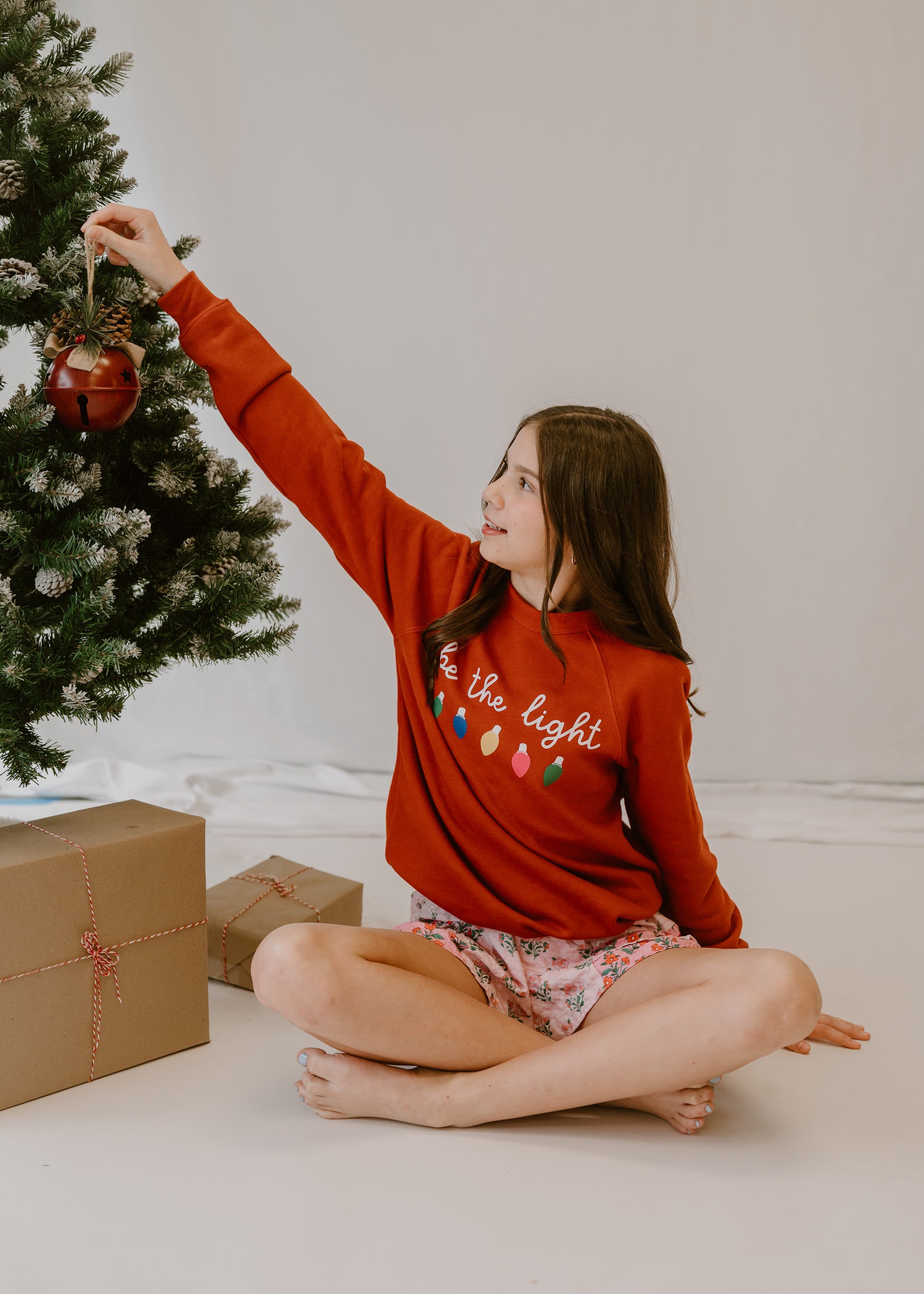 Our Be the Light Christmas crewneck was designed to celebrate the heart of the season — being a light to others. Created to perfectly match our Be the Light children’s pajama collection, this sweatshirt is a cozy, meaningful addition to your family’s holiday wardrobe.